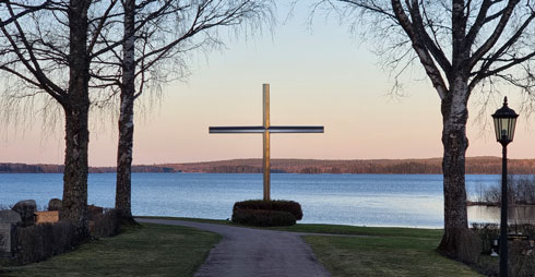 Bild 3. Påsk brukar bli en resa i släkt och gravars fotspår. Bilden visar Folkärna kyrkogård med utsikt över Dalälven.