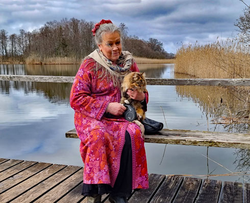 Bild 5. Höjentorp. Redaktör Lena Lindholm och Tussilago (katt).