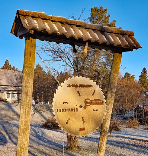 Den som kört väg 335 västerut mot Sollefteå har sett en sågklinga hänga utmed vägen. Denna har under senare år ersatts av en skylt.