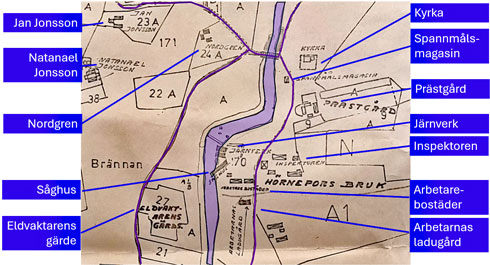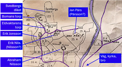 I bild 2 omnämns Jonsson och Nordgren. Vid järnbruket behövdes en eldvaktare. Eldvaktaren har en egen täppa och även en gård som återkommer nedan.